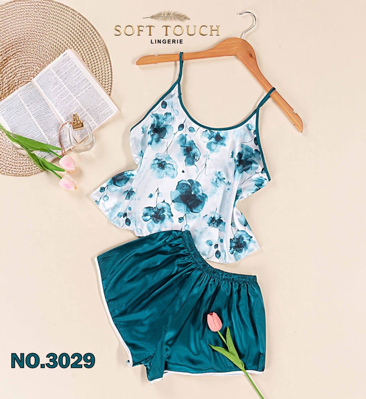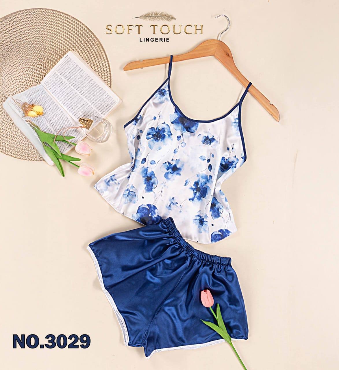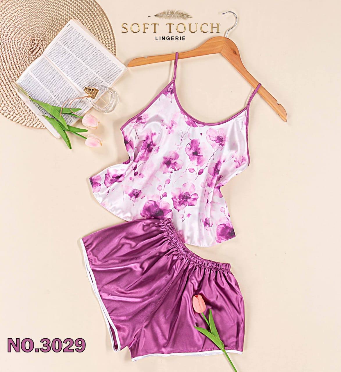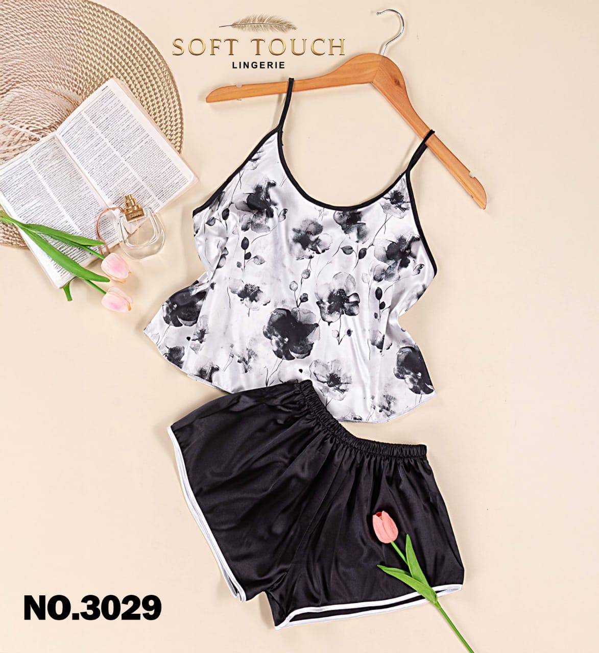 جاذبية الصيف: بيجامة الستان المشجرة شورت (كود 3029) – سوفت تاتش