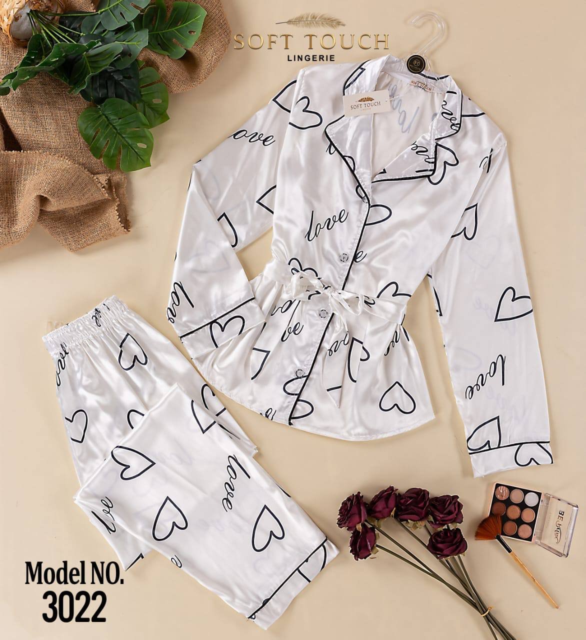 💖 رقة وجاذبية: بيجامة الستان المشجرة 3022 – SOFT TOUCH LINGERIE 💖