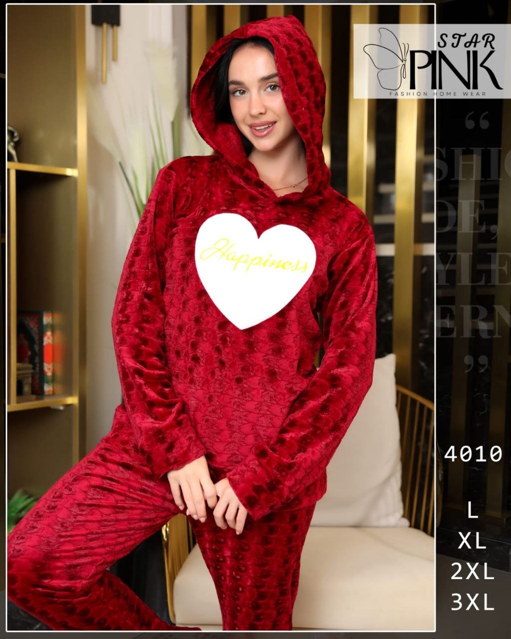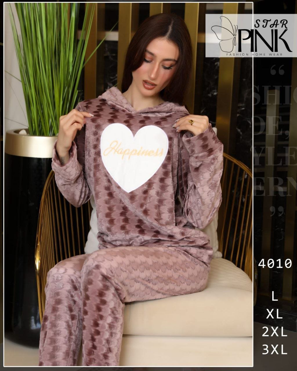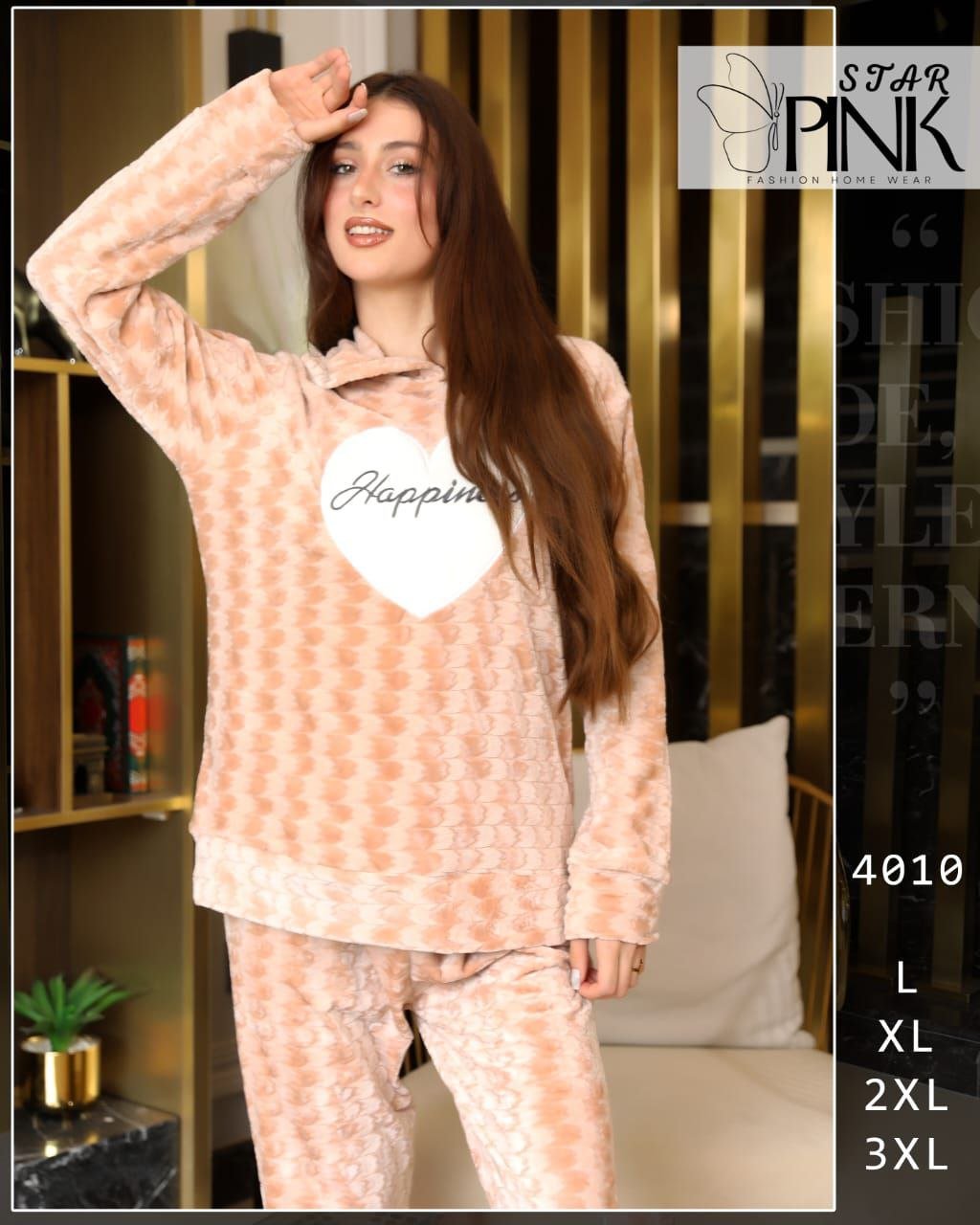 بيجامة قطيفة وبولار فاخرة من بينك ستار – الكود 4010