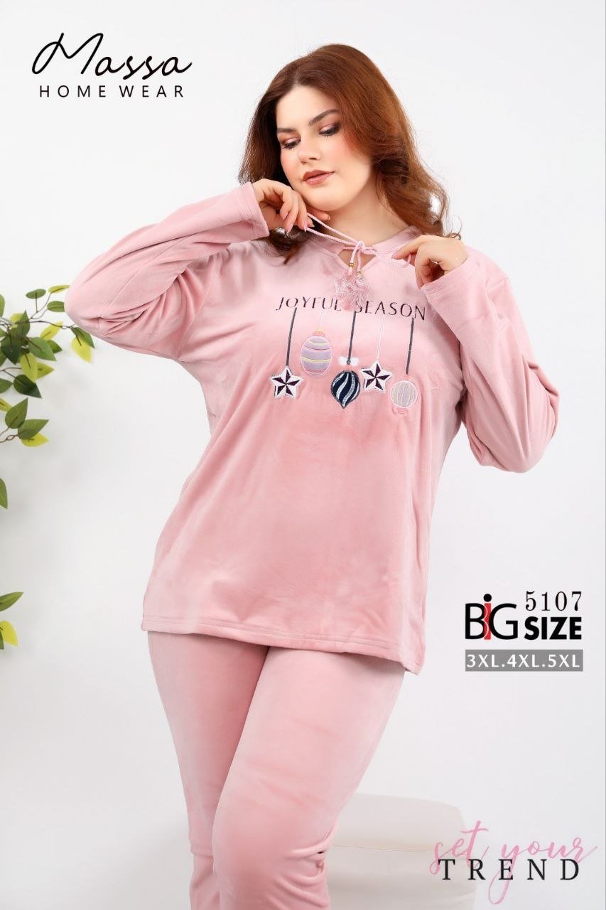 بيجامة قطيفة بيج سايز من الماسه – راحة ودفء بمقاسات خاصة