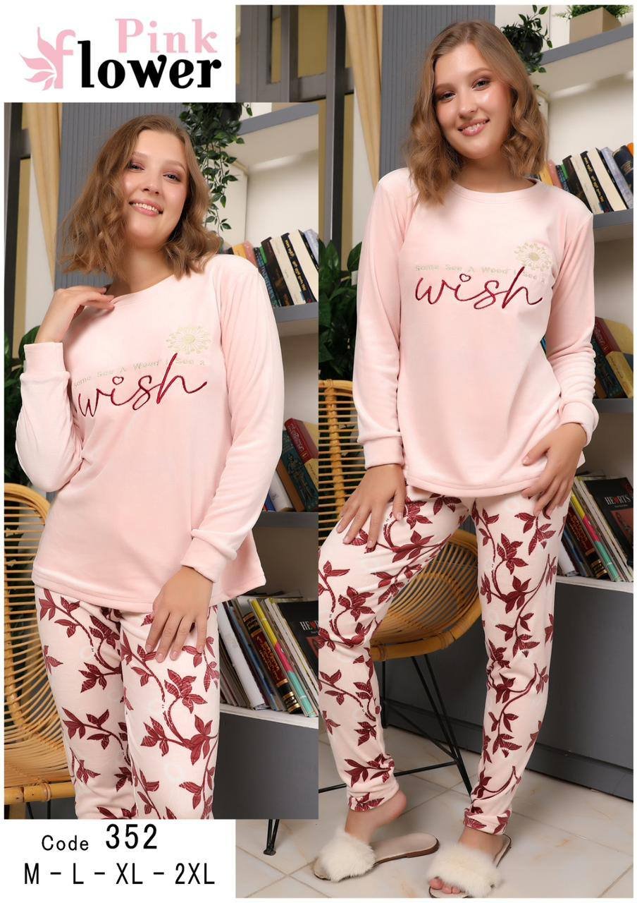 بيجامة قطيفة فاخرة من بينك فلاور – الكود 352