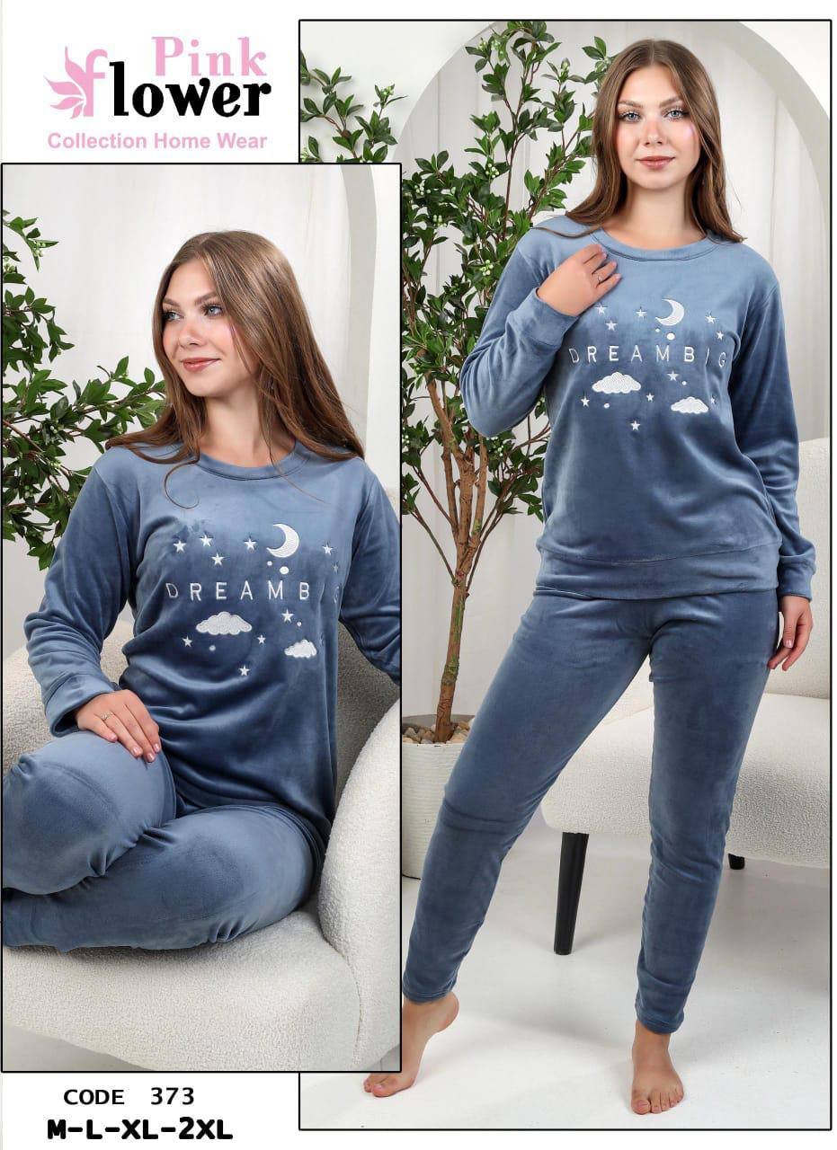 بيجامة قطيفة فاخرة من بينك فلاور – الكود 373
