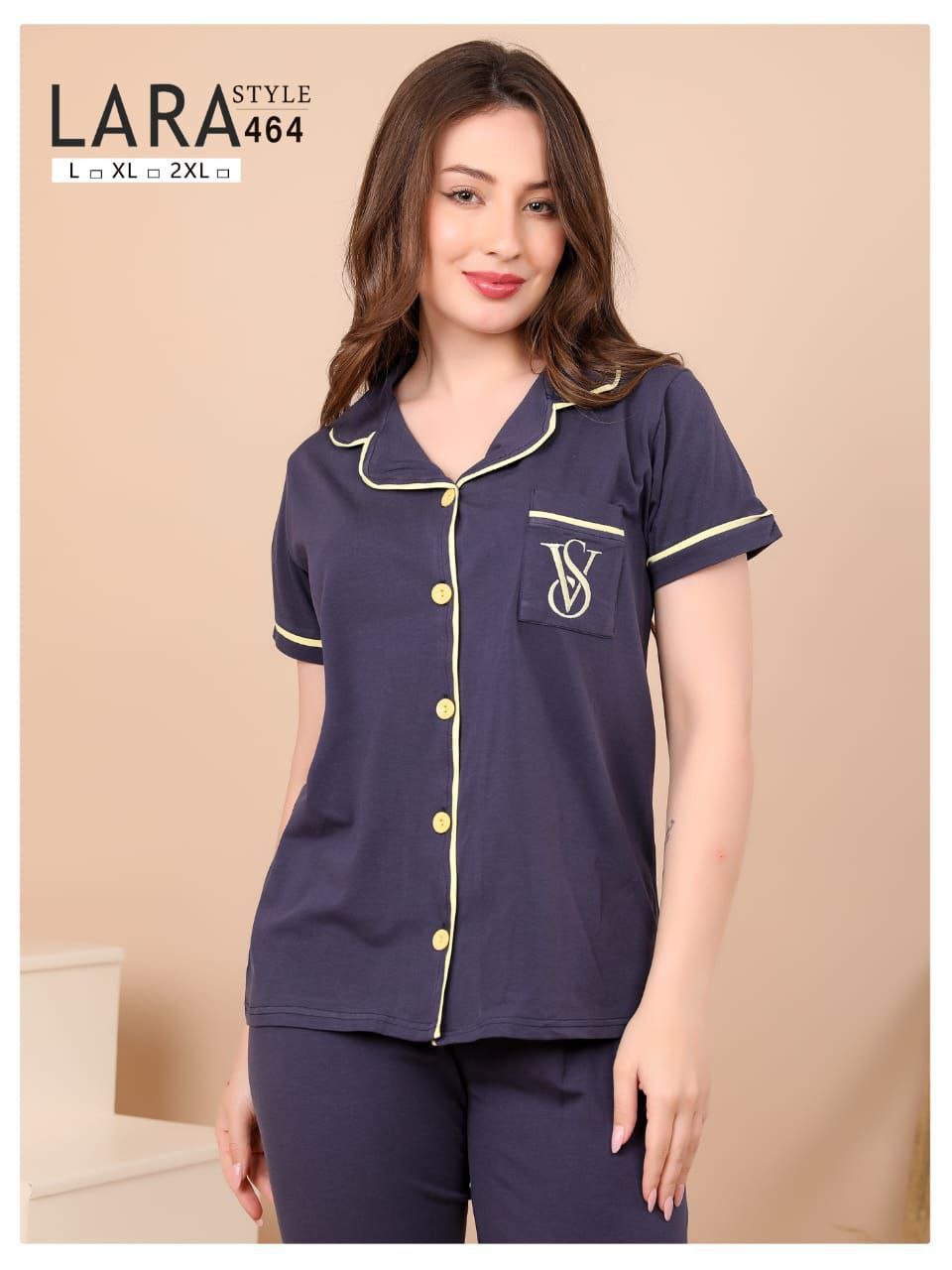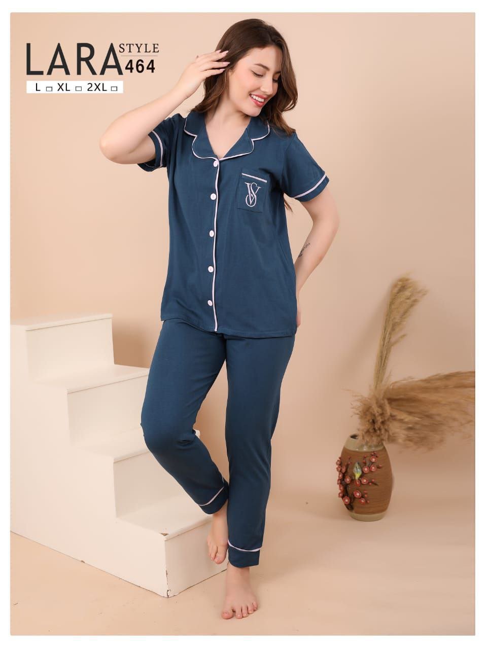 استمتعي بالراحة والأناقة مع طقم البيجامة القطنية الرائع والمكون من قطعتين: تيشيرت بأزرار أمامية وبنطلون طويل. متوفر بمقاسات: L، XL، 2XL.