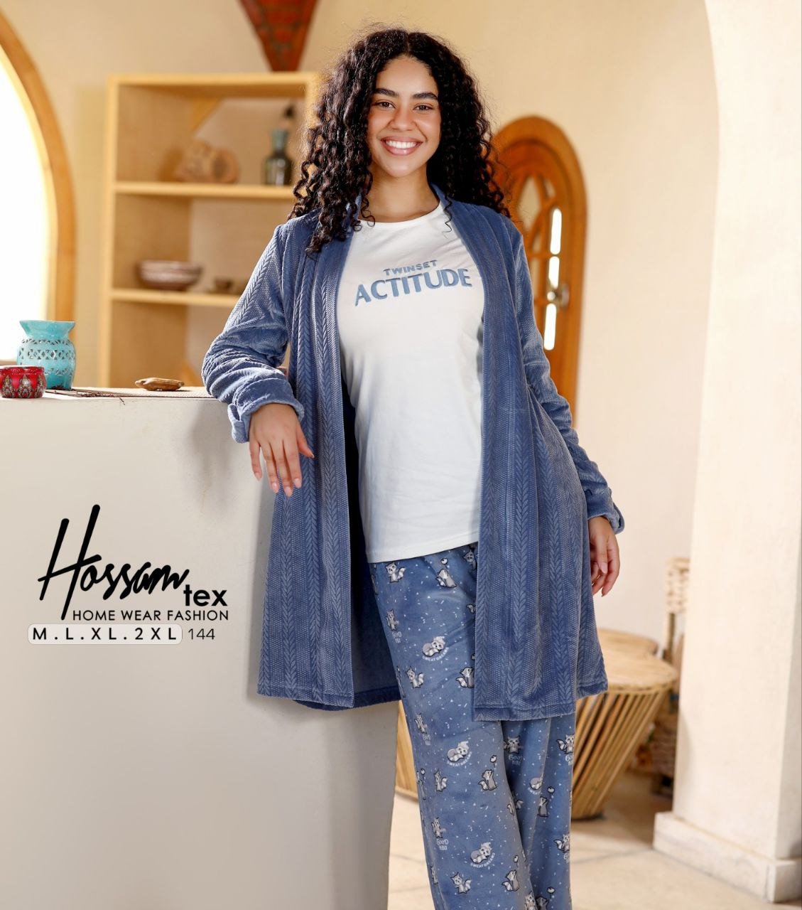 طقم بيجامة شتوي يتكون من 3 قطع، يوفر دفئًا مريحًا وإطلالة عصرية أنيقة في المنزل. مثالي لمن يبحثن عن التدفئة مع إمكانية التنسيق بقطع منفصلة.