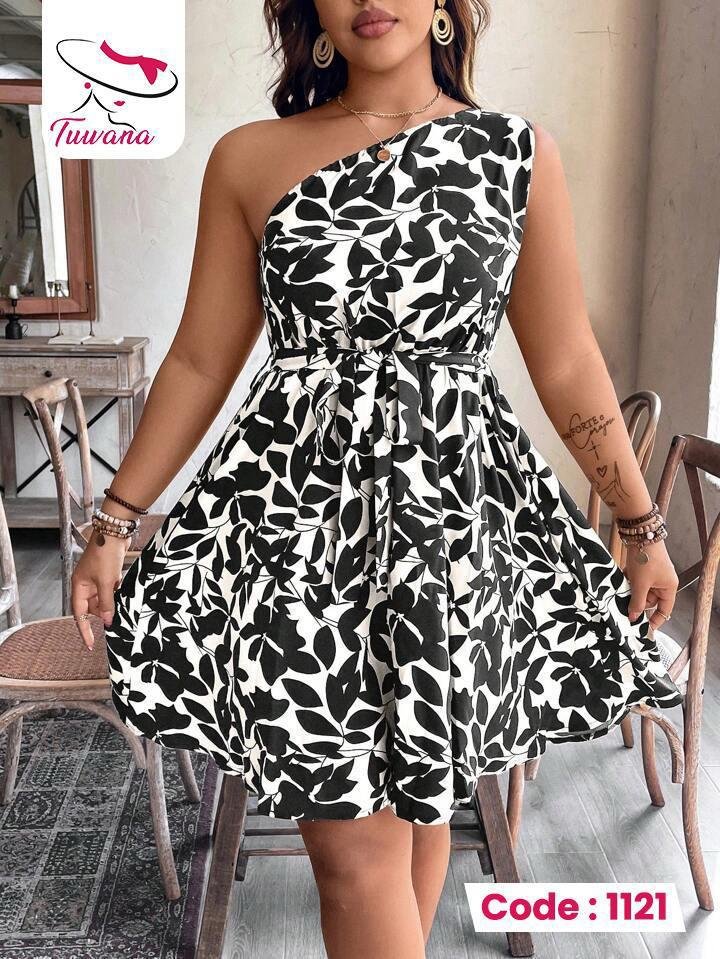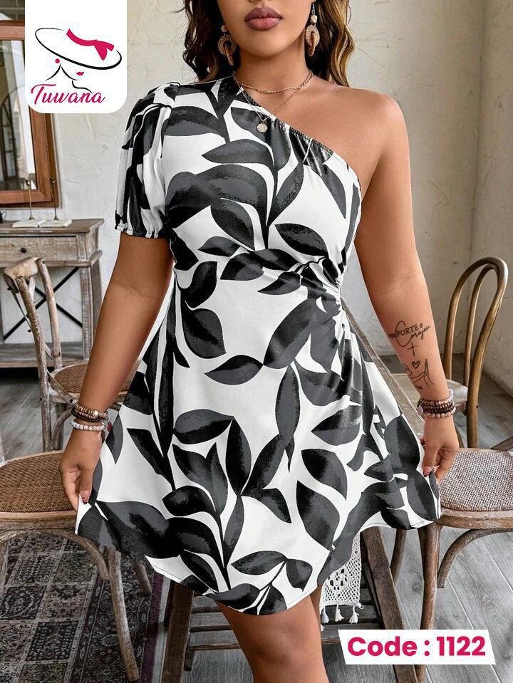 فستان أنيق بتصميم عصري بكتف واحد يمنحك إطلالة مميزة وجذابة.