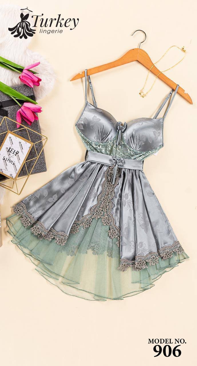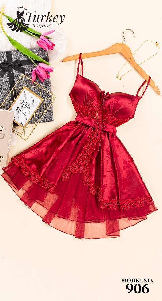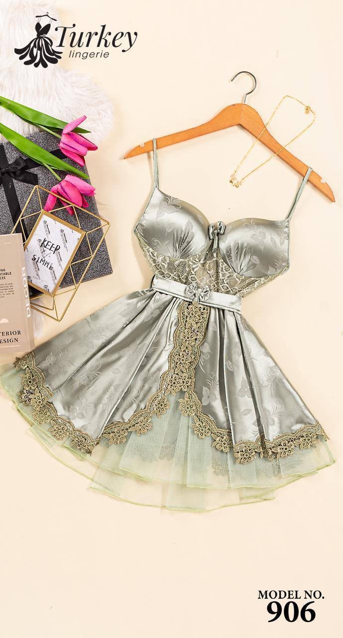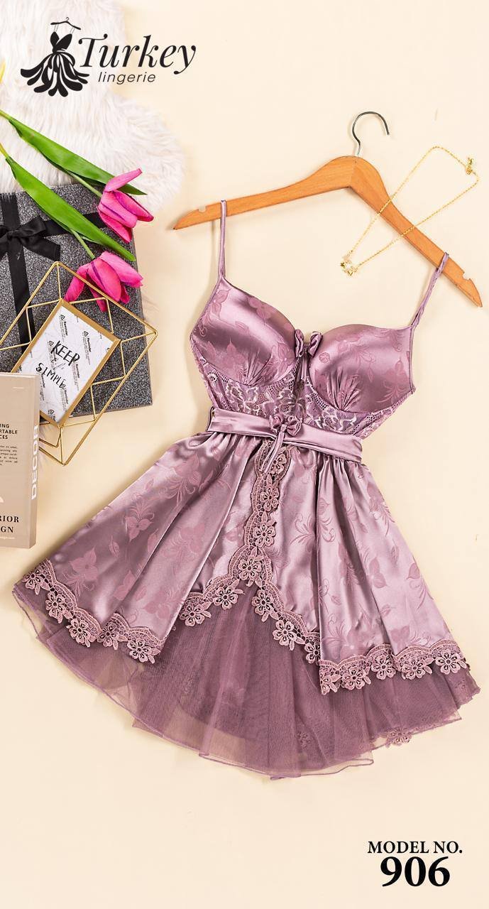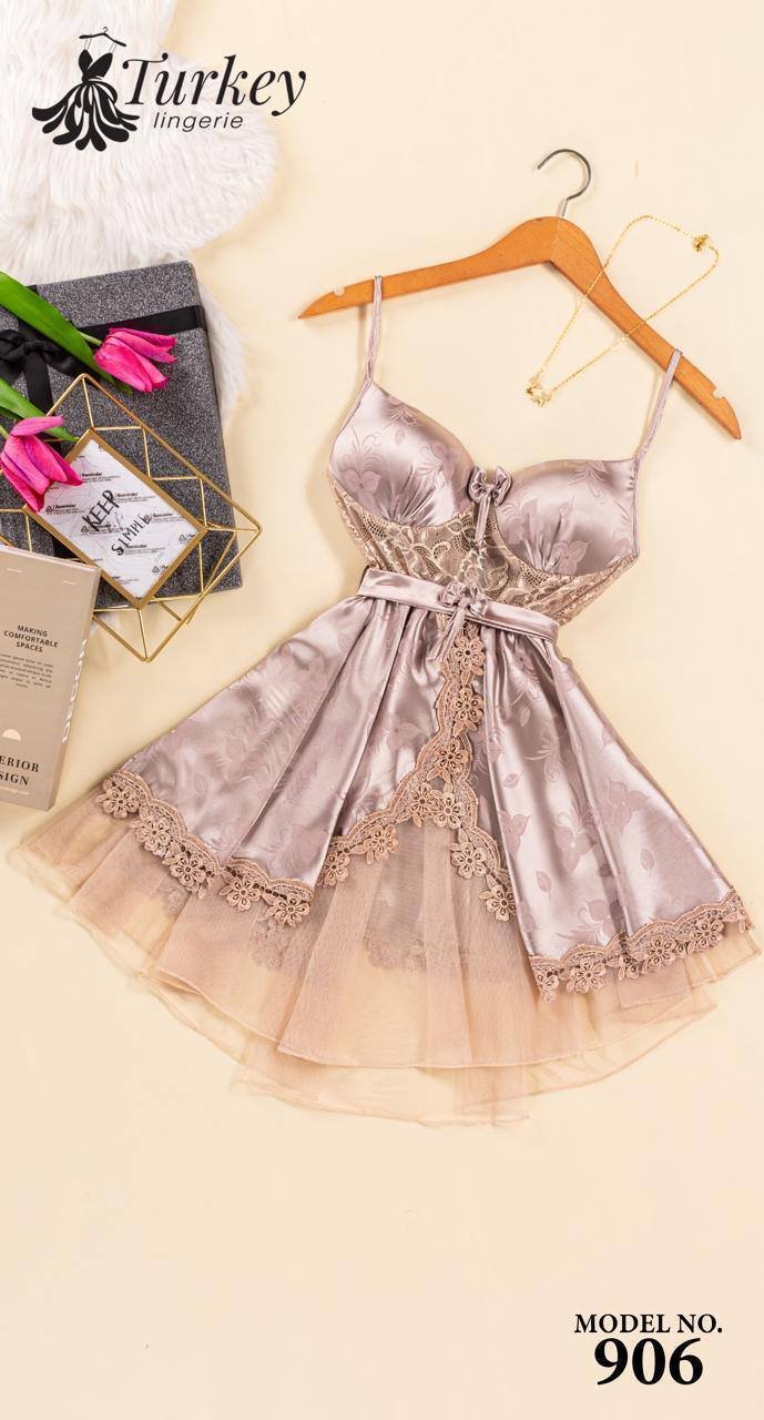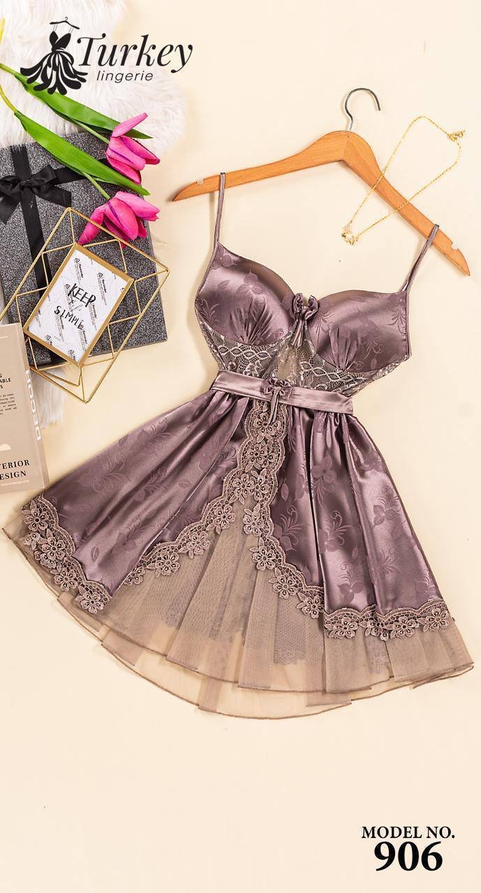 تألقي بإطلالة مفعمة بالأنوثة مع قميص النوم القصير الكت المصنوع من الساتان الناعم بتفاصيل من التل الرقيق.