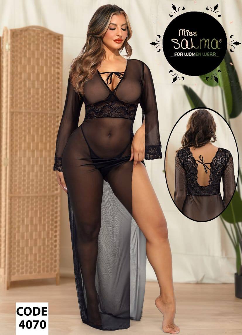 فستان نوم شفاف بتصميم أنيق وطابع جريء