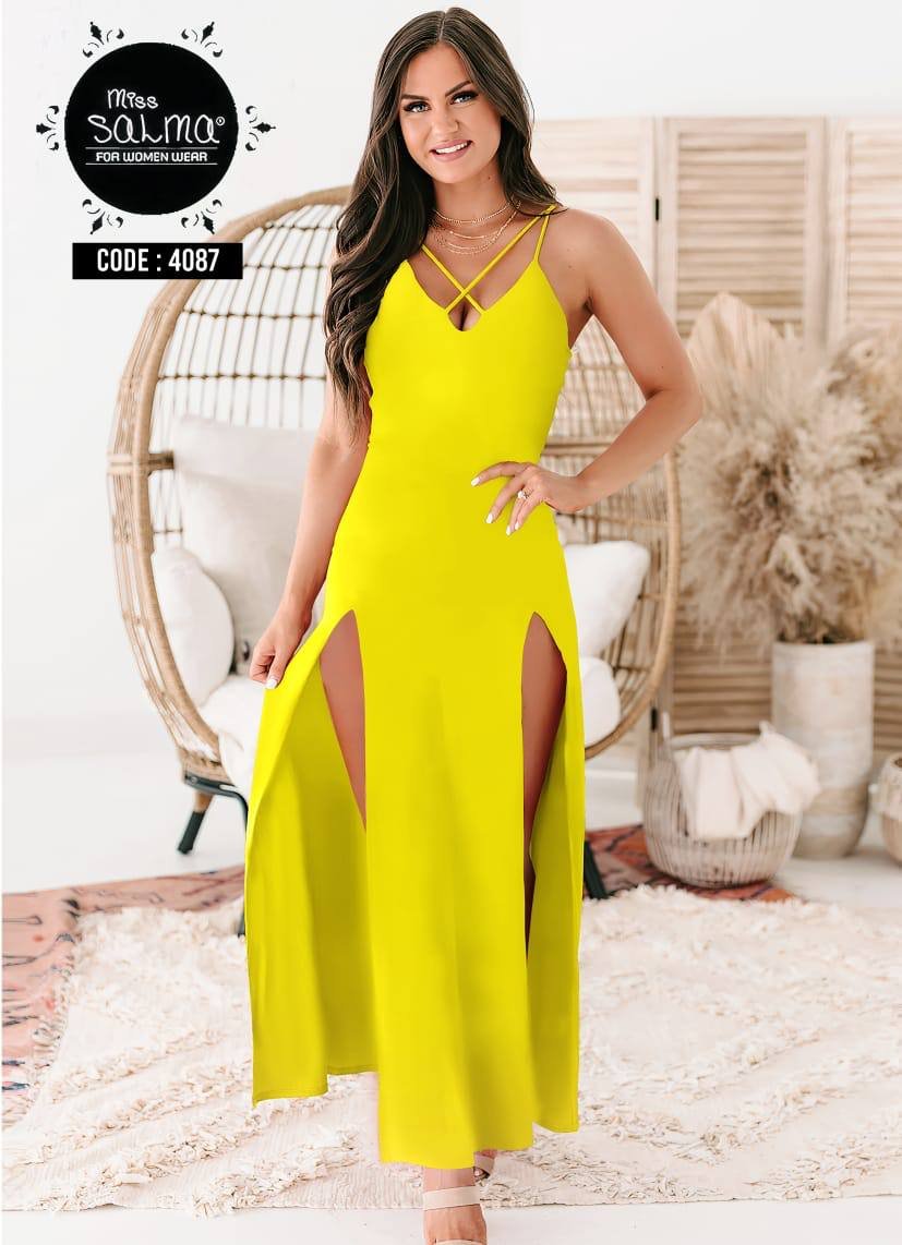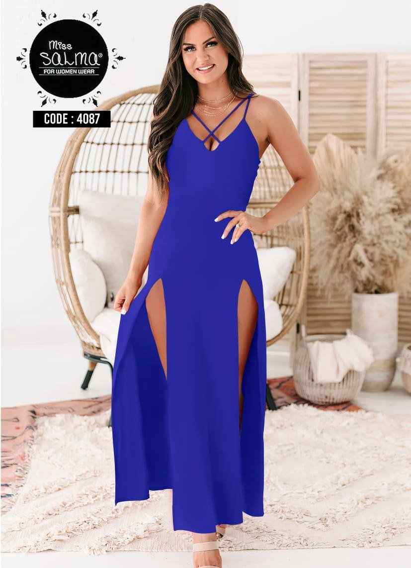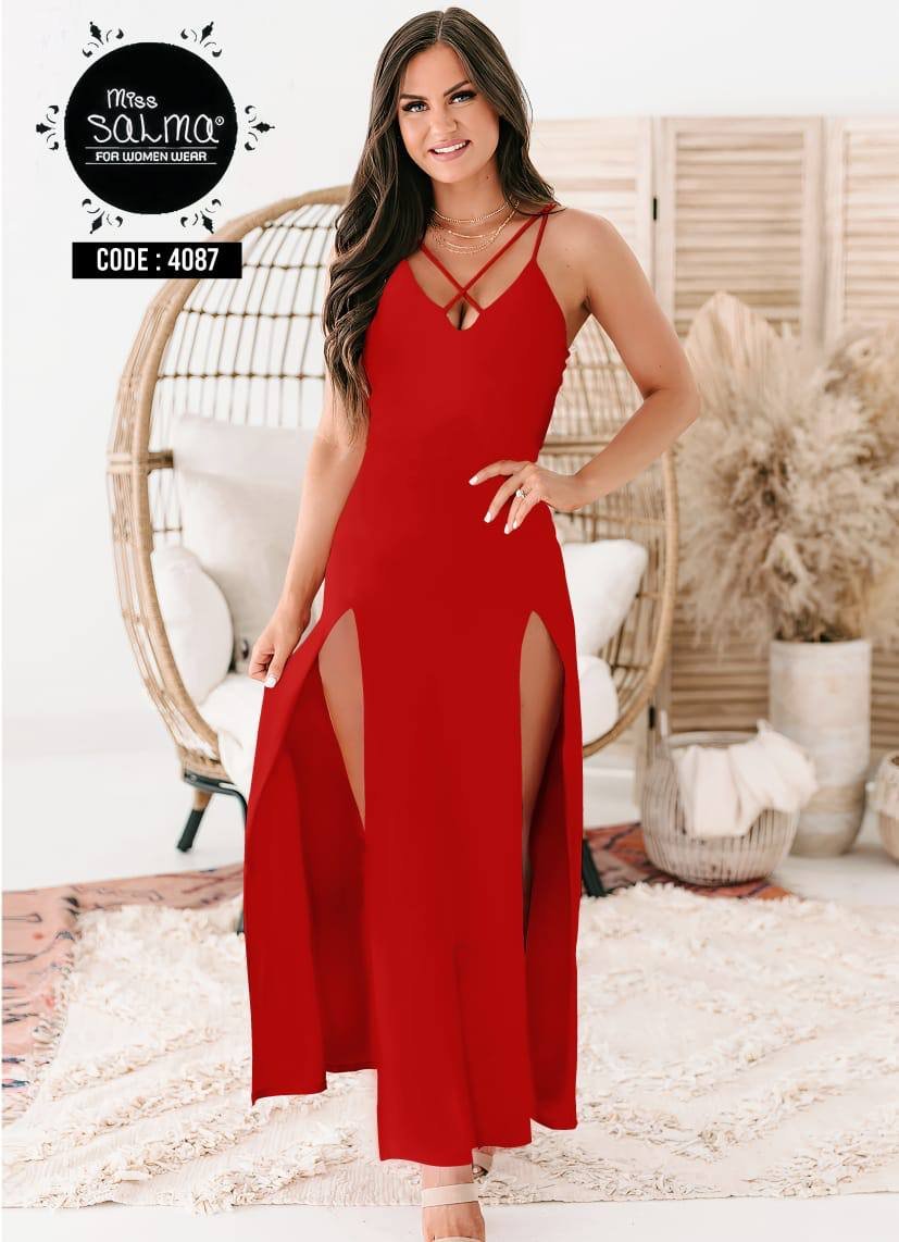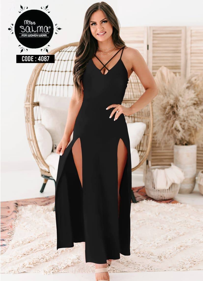 يتميز بحمالات رفيعة متقاطعة عند الصدر مع فتحة أمامية صغيرة تضيف لمسة جريئة.