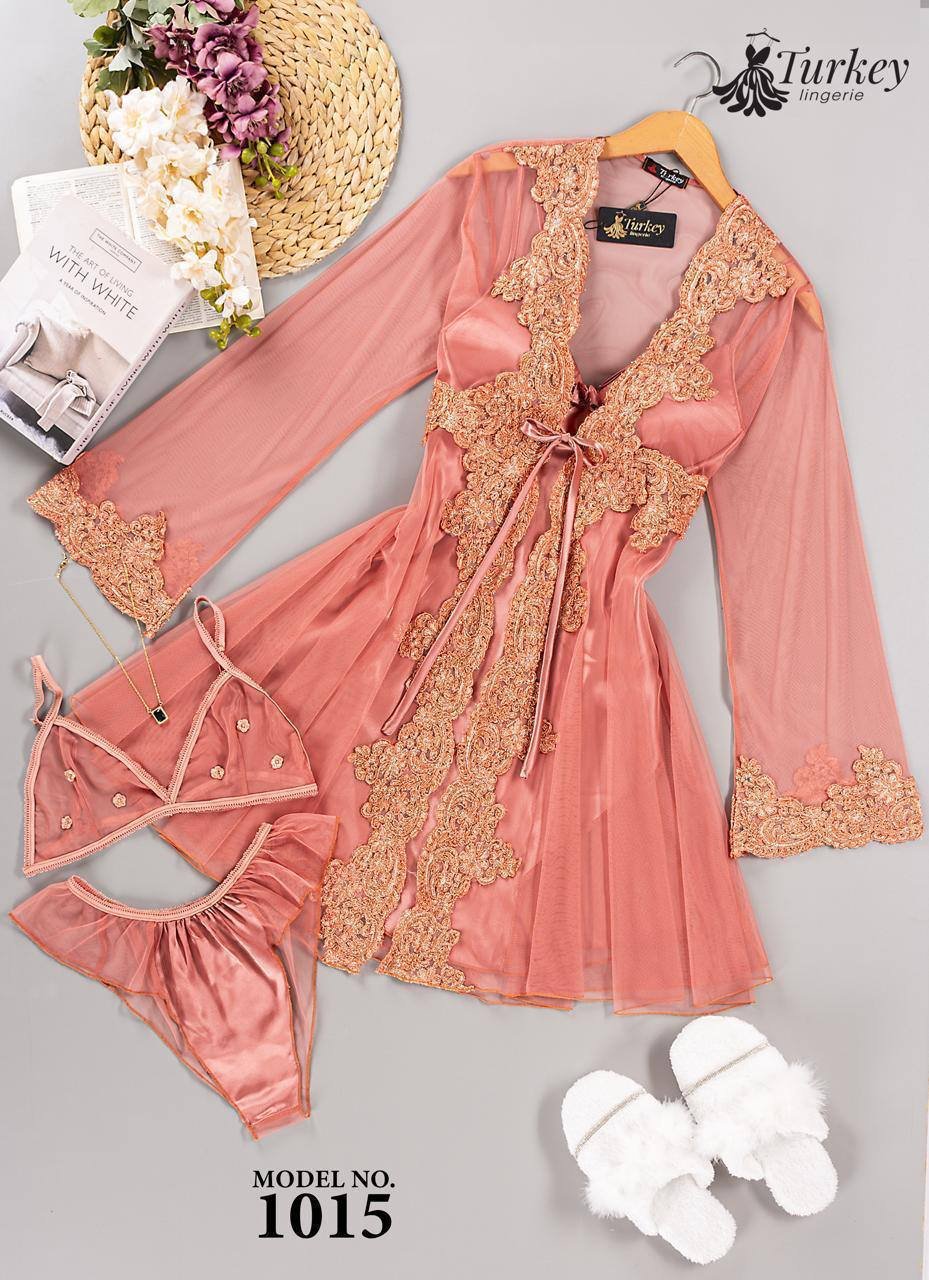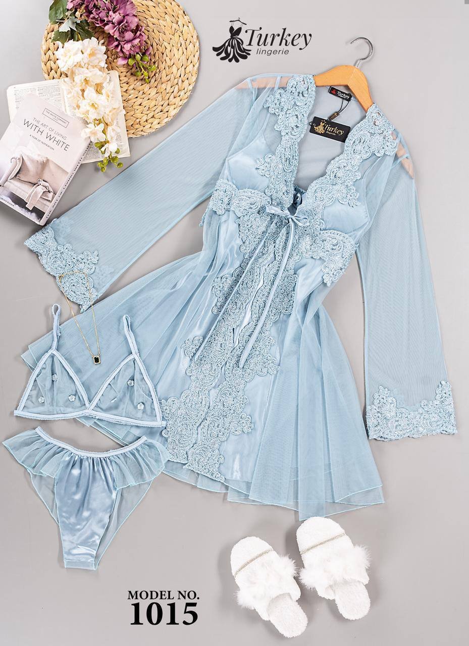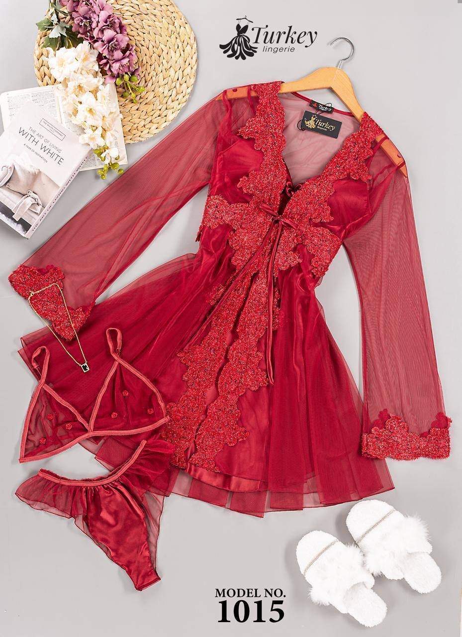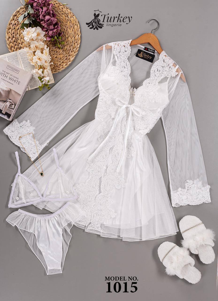 طقم لانجري أنيق يتكون من قطعتين مع روب شفاف تل