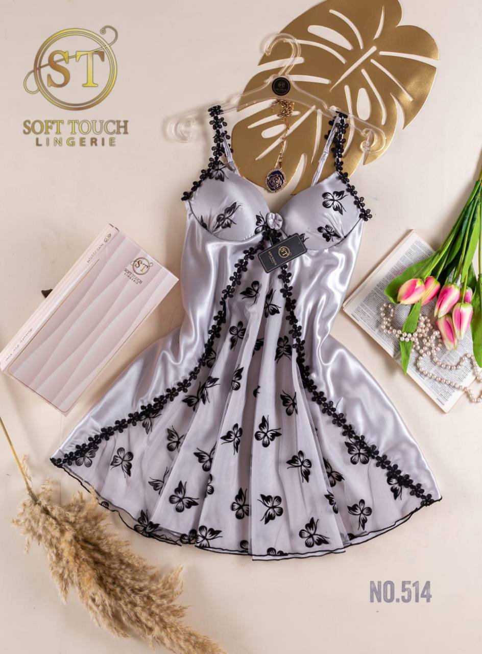 قميص ستان قصير كب مطعم بدانتيل مطبوع مصنع سوفت تاتش 514 يلبس الى 75 كيلو