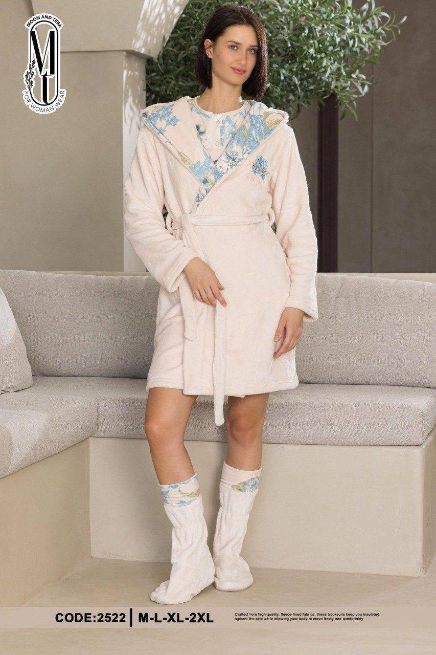 كاش قطيفة قصير بتصميم بروب أنيق من MT، يجمع بين الدفء والأناقة في قطعة واحدة عملية. مثالي للارتداء في الأجواء الباردة، سواء في المنزل أو خلال فترات الاسترخاء.