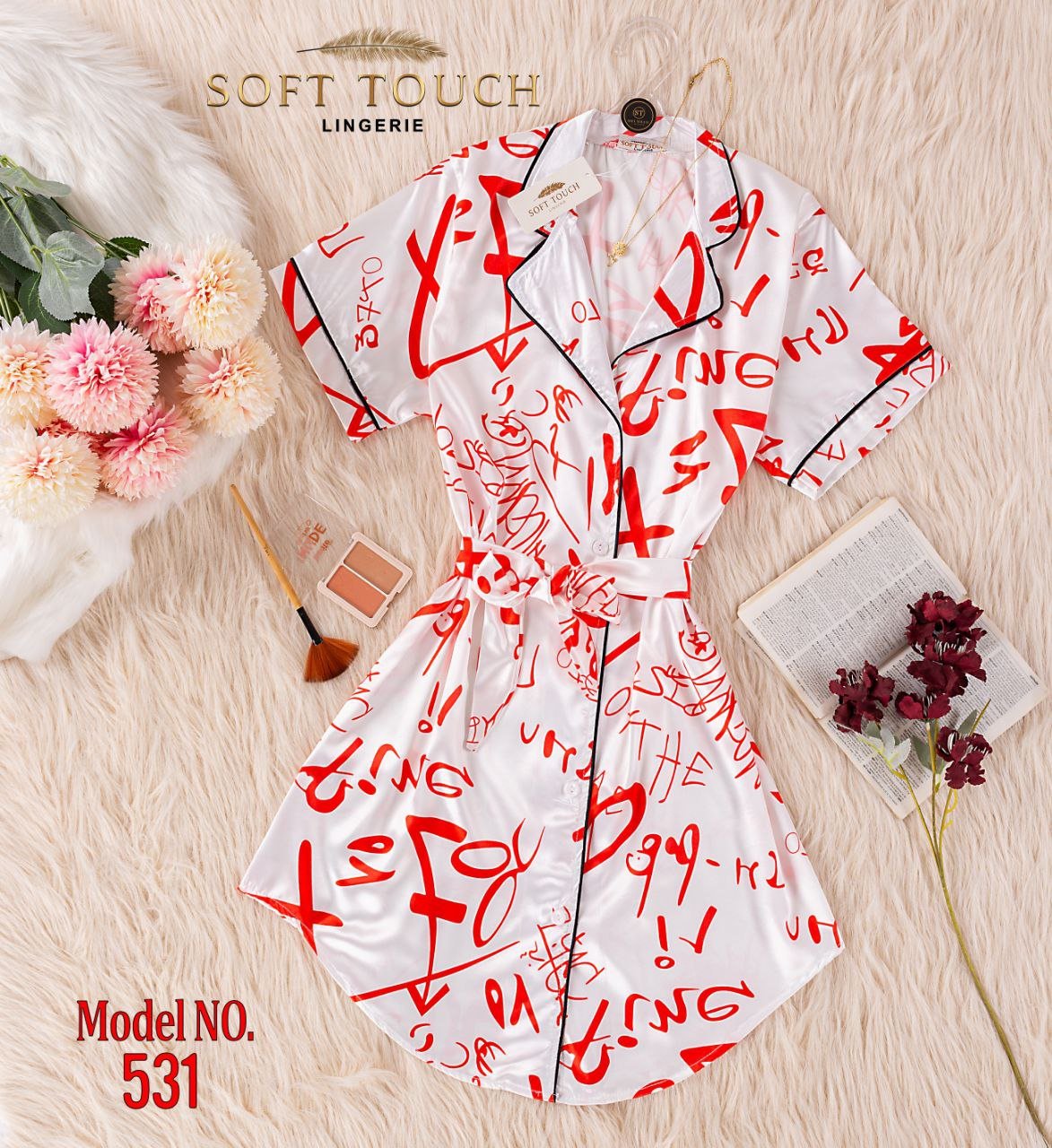 كاش نص كم ستان ناعم بزراير مطبوع مع حزام مصنع سوفت تاتش 531 يلبس الى 75 كيلو